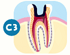 C3のように進行した状態では、神経と炎症の起きている部位を取り除く根管治療が必要になる場合があります。