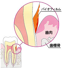 歯周病は、歯の表面に付いたバクテリア(歯周病菌)が歯周組織を次々に破壊し骨まで溶かしてしまう病気です。