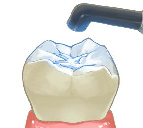 虫歯になりやすい奥歯の溝を、フッ素を放出するお薬で埋めて予防する方法です。定期的に交換するとより効果的です。