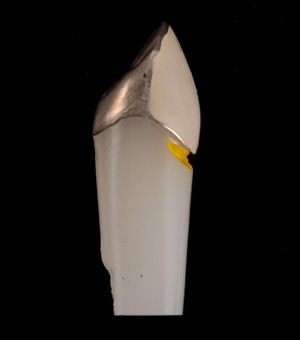 金属にセラミックを焼きつけた被せもの(クラウン)で、中身が金属なので非常に丈夫な上に外側のセラミックが自然な美しさを維持します。